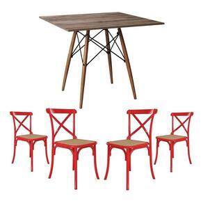 Conjunto De Mesa Eiffel Quadrado Tampo De Madeira 90cm Amêndoa Com 4 Cadeiras Katrina Vermelha Assen