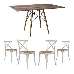 Conjunto De Mesa Eiffel Retangular Tampo De Madeira 120x75cm Amêndoa Com 4 Cadeiras Katrina Branca A