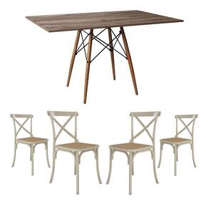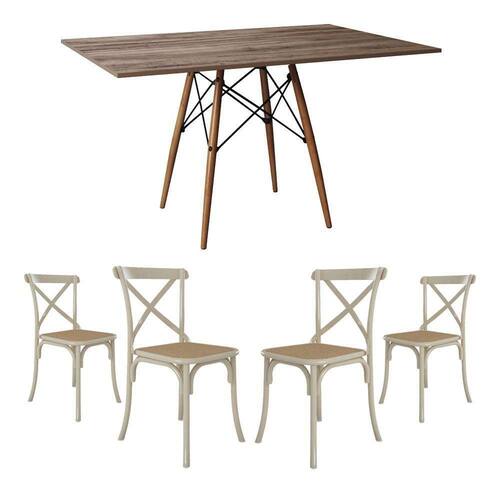 Conjunto De Mesa Eiffel Retangular Tampo De Madeira 120x75cm Amêndoa Com 4 Cadeiras Katrina Off Whit