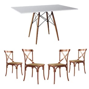 Conjunto De Mesa Eiffel Retangular Tampo De Madeira 120x75cm Branco Com 4 Cadeiras Katrina Cobre Ass