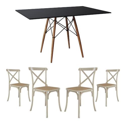 Conjunto De Mesa Eiffel Retangular Tampo De Madeira 120x75cm Preto Com 4 Cadeiras Katrina Off White
