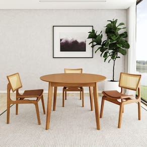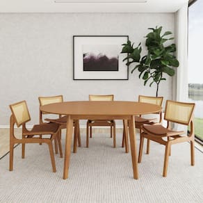 A Mesa Tarsila é uma obra-prima de design, fabricada com madeira de alta qualidade, e apresenta um tampo redondo que pode ser facilmente estendido de 1,20 metros a 1,60 metros. Sua versatilidade é incomparável - adapta-se a refeições íntimas ou a encontros maiores, com espaço para todos.