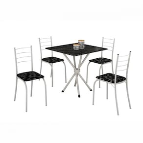 Marca: Teixeira Modelo: Conjunto de Mesa Ipanema 0,75m Com 4 Cadeiras Grafite Teixeira Material: Base e Cadeira de Aço carbono Tampo: Ardósia Pés: Sapatas de borracha Itens Inclusos: 1 Base, 1 Tampo e 4 Cadeiras