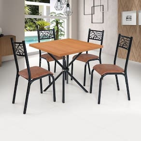Tampo de MDP Laminado: produzido a partir de chapas de madeira industrial de média densidade com revestimento de laminado plástico prensado e fundido nas duas faces através de altas temperaturas e baixa pressão. Medida da Mesa (A x L x P): 75cm x 75cm x 75cm Peso da Mesa: 11,63 kg Mesa suporta até: 10.0000 Acabamento da Cadeira/Banco: Pintura Epóxi Acabamento da Mesa: Pintura Epóxi Acompanha Manual de Instalação: Sim Ambiente Principal: Sala de Estar Cadeira/Banco estofada: Somente Assento Estofado Cadeira/Banco Estofada: Somente Assento Estofado Cadeira/Banco suporta até: 100.0000 codigo_ean: 7900288109538 Complexidade da Montagem: Baixa: pode ser montado por uma pessoa sozinha Configuração do Conjunto: Mesa com Cadeiras Cor: Preto/Caramelo/Freijó Cor da Base: Preto Cor das Cadeiras: Preto Cor do Produto: Preto/Caramelo/Freijó Cor do Tampo: Bege Cor Secundária: Marrom De Canto (Canto Alemão): Não Escala de Brilho: Fosco Espessura do Tampo: 30 mm Formato do Tampo: Quadrado Itens Inclusos: 1 Base de Mesa + 4 Cadeiras + 1 Tampo de Madeira + Kits de Parafusos + Manual de Montagem Linha ou Coleção: JADE Manual de Montagem e Instalação: https://product-hub-prd.madeiramadeira.com.br/982139/documents/f34a9f30-43cd-4a74-8125-a343634fa35c2679171604717392812403119.pdf Marca: Ciplafe Material da Base da Mesa: Aço Carbono Material da Estrutura da Cadeira: Aço Carbono Material do Tampo: MDP Material Principal: Aço Carbono Material Principal das Cadeiras/Bancos: Aço Carbono Medida da Base (A x L x P): 74cm x 51cm x 72cm Medida da Cadeira/Banco (A x L x P): 91cm x 37cm x 49cm Medida do Tampo (L x C x E): 75cm x 75cm x 3cm Mesa Dobrável: Não Mesa Extensível: Não Necessita Montagem: Sim Origem do Produto: Nacional Peso da Cadeira/Banco: 3,65 kg Possui Apoio Para os Pés: Não Possui Prateleiras: Não Possui Vidro: Não Quantidade de Cadeiras: 4 Quantidade de Lugares: 04 Recomendações de Uso, Manutenção e Limpeza: Limpar com pano levemente umedecido. Não usar produtos abrasivos que possam danificar a superfície do móvel. Sistema de Montagem: Parafusos Tipo de Assento: Removível Tipo de Encosto: Fixo