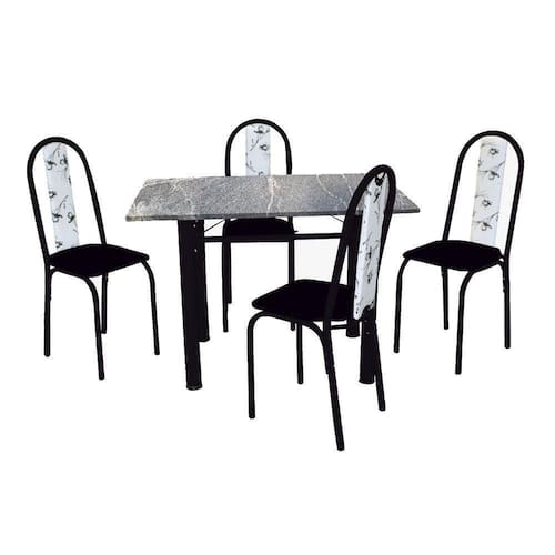 Conjunto De Mesa Michelly Com 04 Cadeiras 110x75cm Moura Preto Com Branco Floral