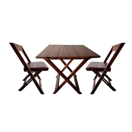 Conjunto De Mesa Para Bar 2 Cadeiras Dobráveis Em Madeira Imbuia
