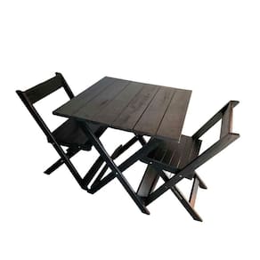 Conjunto De Mesa Para Bar 2 Cadeiras Dobráveis Em Madeira Preto