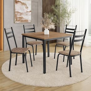 Conjunto de Mesa Quadrada com Tampo de MDP Amadeirado e 4 Cadeiras Adriana Revestimento Sintético Bege e Preto