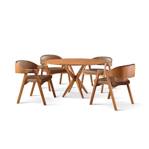 Com design sofisticado e acabamento impecável, este conjunto une o charme da madeira maciça ao conforto do estofamento em couro caramelo, criando um ambiente moderno e cheio de personalidade.