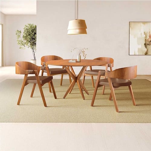 Ideal para receber a família e amigos, esse conjunto une beleza, durabilidade e aquele toque especial que só a Zurc Decor oferece. Medida da Mesa (A x L x P): 73,5 x 120 x 120 Peso da Mesa: 20 kg Mesa suporta até: 20 kg Acabamento da Cadeira/Banco: Verniz Natural Acabamento da Mesa: Verniz Ambiente Principal: Sala de Jantar Apoio para Braços Estofado: Não Cadeira/Banco estofada: Somente Assento Estofado Cadeira/Banco Estofada: Somente Assento Estofado Cadeira/Banco suporta até: 120 kg Cadeira/Banco Suporta Até: 120.0000 codigo_ean: 7900288281449 Configuração do Conjunto: Mesa com Cadeiras Cor: Marrom Cor da Base: Natural Cor das Cadeiras: Marrom Cor do Produto: Marrom Cor do Tampo: Natural Cor Secundária: Marrom De Canto (Canto Alemão): Não Design da Base: Em X Escala de Brilho: Brilhante Espessura do Tampo: 50 mm Estrutura do Assento: Eucalipto Estrutura do Encosto: Couro Ecológico Formato do Tampo: Redondo Informações Complementares: Utilizar aspirador de pó, escova com cerdas macias ou limpeza a seco. Não utilizar produtos químicos, abrasivos ou limpeza a vapor. Evitar exposição prolongada ao sol. Itens Inclusos: 1 Mesa e 4 Cadeiras Linha ou Coleção: Luna Manual de Montagem e Instalação: https://product-hub-prd.madeiramadeira.com.br/856413592/documents/3e47ad7e-b3a0-457a-b90c-7bdafd0e8b2c3305839518817618693002823.pdf Marca: Zurc Decor Material da Base da Mesa: Madeira Maciça Material da Estrutura da Cadeira: Madeira Maciça Material do Tampo: Madeira Maciça Material Principal: Madeira Maciça Material Principal das Cadeiras/Bancos: Madeira Maciça Medida da Cadeira/Banco (A x L x P): 80 x 60 x 48 Medida do Tampo (L x C x E): 120 x 120 x 5 Mesa Dobrável: Não Mesa Extensível: Não Necessita Montagem: Não Origem do Produto: Nacional Peso da Cadeira/Banco: 15 kg Possui Apoio para Braços: Sim Possui Apoio Para os Pés: Não Possui Vidro: Não Quantidade de Cadeiras: 4 Quantidade de Lugares: 04 Recomendações de Uso, Manutenção e Limpeza: Utilizar aspirador de pó, escova com cerdas macias ou limpeza a seco. Não utilizar produtos químicos, abrasivos ou limpeza a vapor. Evitar exposição prolongada ao sol. Tipo de Encosto: Fixo Tipo de Madeira Maciça da Base da Mesa: Eucalipto Tipo de Madeira Maciça do Tampo: Eucalipto Marca: Não Informado