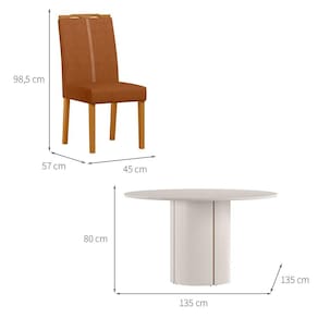O Conjunto Serena é composto por mesa com estrutura em MDF 15 mm, tampo em MDF 18 mm, vidro laqueado 3 mm, pés em madeira, acabamento em pintura UV e cadeiras com estrutura em madeira eucalipto 9 mm, 15 mm e 25 mm, enchimento do assento e encosto em espumVendido e entregue por MOBLY COMERCIO VAREJISTA LTDA.