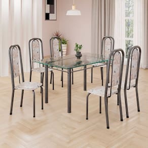 Este conjunto de mesa retangular e 6 cadeiras oferece estilo e praticidade. Com estrutura tubular em aço para estabilidade, o tampo em vidro adiciona sofisticação e resistência a riscos e manchas. As cadeiras combinam harmoniosamente com a mesa, garantindo conforto com estofamento. Ideal para diversos espaços, é perfeito para receber convidados ou desfrutar de refeições em família, criando um ambiente acolhedor e elegante.