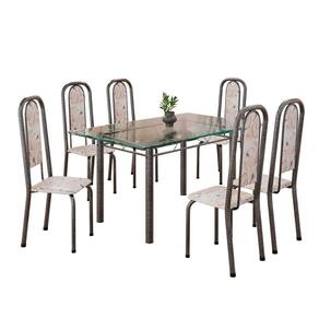 Conjunto de Mesa Retangular 140x75cm Tampo de Vidro 6 Cadeiras Lavínea Botanic Bege / Mart Prata