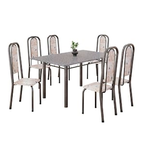 Conjunto de Mesa Retangular 140x75cm Tampo Granito Ocre 6 Cadeiras Lavínea Botanic Bege / Mart Prata
