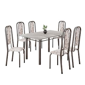 Este conjunto de mesa retangular e 6 cadeiras oferece estilo e praticidade. Com estrutura tubular em aço para estabilidade, o tampo em pedra granito adiciona sofisticação e resistência a riscos e manchas. As cadeiras combinam harmoniosamente com a mesa, garantindo conforto com estofamento. Ideal para diversos espaços, é perfeito para receber convidados ou desfrutar de refeições em família, criando um ambiente acolhedor e elegante. Medida da Mesa (A x L x P): 75,8 cm x 75 cm x 140 cm Peso da Mesa: 65,95 kg Mesa suporta até: 10 kg Acabamento da Cadeira/Banco: Pintura Texturizada Acabamento da Mesa: Polido Ambiente Principal: Sala de Jantar Cadeira/Banco estofada: Somente Assento Estofado Cadeira/Banco suporta até: 120 kg Complexidade da Montagem: Baixa: pode ser montado por uma pessoa sozinha Cor: Arabesco/ Mart Prata Cor do Produto: Arabesco/ Mart Prata Escala de Brilho: Semi-Brilho Espessura do Tampo: 15 mm Estrutura do Assento: Assento em MDP de 15mm c/ couríssimo. Itens Inclusos: 1 Mesa, 6 Cadeiras, Manual De Montagem E Ferragens. Linha ou Coleção: Lavínea Manual de Montagem e Instalação: https://product-hub-prd.madeiramadeira.com.br/917757/documents/80472895-1117-486a-8502-837b7393c6432040633524617181306017506.pdf Material da Base da Mesa: Aço Material da Estrutura da Cadeira: Aço Material do Tampo: Granito Medida da Cadeira/Banco (A x L x P): 108 cm x 37 cm x 40 cm Medida do Tampo (L x C x E): 75 cm x 140 cm x 1,5 cm Necessita Montagem: Sim Origem do Produto: Nacional Peso da Cadeira/Banco: 3,82 kg Possui Apoio Para os Pés: Não Quantidade de Lugares: 06 Recomendações de Uso, Manutenção e Limpeza: Usar um pano de tecido macio e seco, evitar detergentes, alvejantes e produtos químicos de limpeza; no tampo usar tecido macio levemente umedecido. Sistema de Montagem: Parafusos