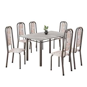 Conjunto de Mesa Retangular 140x75cm Tampo Granito Topázio 6 Cadeiras Lavínea Botanic Bege / Mart Prata