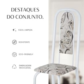 Este conjunto de mesa retangular e 8 cadeiras oferece estilo e praticidade. Com estrutura tubular em aço para estabilidade, o tampo em pedra ardósia adiciona sofisticação e resistência a riscos e manchas. As cadeiras combinam harmoniosamente com a mesa, garantindo conforto com estofamento. Ideal para diversos espaços, é perfeito para receber convidados ou desfrutar de refeições em família, criando um ambiente acolhedor e elegante. Medida da Mesa (A x L x P): 75,8 cm x 75 cm x 180 cm Peso da Mesa: 63,2 kg Mesa suporta até: 10 kg Acabamento da Cadeira/Banco: Pintura Texturizada Acabamento da Mesa: Pintura Texturizada Ambiente Principal: Sala de Jantar Cadeira/Banco estofada: Somente Assento Estofado Cadeira/Banco suporta até: 120 kg Complexidade da Montagem: Baixa: pode ser montado por uma pessoa sozinha Cor: Arabesco/ Branco Cor do Produto: Arabesco/ Branco Cor Secundária: Branco De Canto (Canto Alemão): Não Escala de Brilho: Semi-Brilho Espessura do Tampo: 15 mm Estrutura do Assento: Assento em MDP de 15mm c/ couríssimo. Formato do Tampo: Retangular Itens Inclusos: 1 Mesa, 8 Cadeiras, Manual De Montagem E Ferragens. Linha ou Coleção: Lavínea Manual de Montagem e Instalação: https://product-hub-prd.madeiramadeira.com.br/921287/documents/668da1fc-874d-4f74-9025-ba8724c266c102040422524617181286421905.pdf Material da Base da Mesa: Aço Material da Estrutura da Cadeira: Aço Material do Tampo: Ardósia Medida da Cadeira/Banco (A x L x P): 108 cm x 37 cm x 40 cm Medida do Tampo (L x C x E): 75 cm x 180 cm x 1,5 cm Mesa Extensível: Não Necessita Montagem: Sim Origem do Produto: Nacional Peso da Cadeira/Banco: 3,82 kg Possui Apoio Para os Pés: Não Quantidade de Lugares: 08 Recomendações de Uso, Manutenção e Limpeza: Usar um pano de tecido macio e seco, evitar detergentes, alvejantes e produtos químicos de limpeza; no tampo usar tecido macio levemente umedecido. Sistema de Montagem: Parafusos