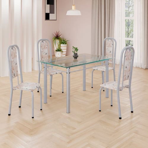 Este conjunto de mesa retangular e 4 cadeiras oferece estilo e praticidade. Com estrutura tubular em aço para estabilidade, o tampo em vidro adiciona sofisticação e resistência a riscos e manchas. As cadeiras combinam harmoniosamente com a mesa, garantindo conforto com estofamento. Ideal para diversos espaços, é perfeito para receber convidados ou desfrutar de refeições em família, criando um ambiente acolhedor e elegante.