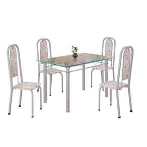 Conjunto de Mesa Retangular a 120x75cm Tampo de Vidro 4 Cadeiras Lavínea Botanic Bege / Mart Pérola - Branco