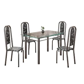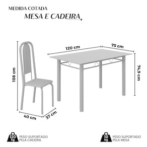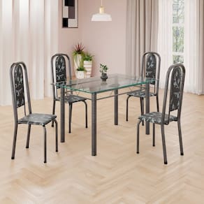 Este conjunto de mesa retangular e 4 cadeiras oferece estilo e praticidade. Com estrutura tubular em aço para estabilidade, o tampo em vidro adiciona sofisticação e resistência a riscos e manchas. As cadeiras combinam harmoniosamente com a mesa, garantindo conforto com estofamento. Ideal para diversos espaços, é perfeito para receber convidados ou desfrutar de refeições em família, criando um ambiente acolhedor e elegante. Medida da Mesa (A x L x P): 74,9 cm x 75 cm x 120 cm Peso da Mesa: 20,18 kg Mesa suporta até: 10 kg Acabamento da Cadeira/Banco: Pintura Texturizada Acabamento da Mesa: Polido Ambiente Principal: Sala de Jantar Cadeira/Banco estofada: Encosto e Assento Estofados Cadeira/Banco suporta até: 120 kg Complexidade da Montagem: Baixa: pode ser montado por uma pessoa sozinha Cor: Preto Floral/ Mart Prata Cor do Produto: Preto Floral/ Mart Prata Escala de Brilho: Semi-Brilho Espessura do Tampo: 6 mm Estrutura do Assento: Assento em MDP de 15mm c/ couríssimo. Itens Inclusos: 1 Mesa, 4 Cadeiras, Manual de Montagem e Ferragens e Kit de ferragens Manual de Montagem e Instalação: https://product-hub-prd.madeiramadeira.com.br/917372/documents/c070861d-d642-49d6-9a6d-e17c8357b5ac2040633524617181306017506.pdf Material da Base da Mesa: Aço Material da Estrutura da Cadeira: Aço Material do Tampo: Vidro Medida da Cadeira/Banco (A x L x P): 108 cm x 37 cm x 40 cm Medida do Tampo (L x C x E): 75 cm x 120 cm x 0,6 cm Necessita Montagem: Sim Origem do Produto: Nacional Peso da Cadeira/Banco: 3,82 kg Possui Apoio Para os Pés: Não Quantidade de Lugares: 04 Recomendações de Uso, Manutenção e Limpeza: Usar um pano de tecido macio e seco, evitar detergentes, alvejantes e produtos químicos de limpeza; no tampo usar tecido macio levemente umedecido. Sistema de Montagem: Parafusos Vidro Temperado: Sim