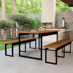Ideal para área gourmet, varanda, sala de jantar ou churrasqueira, o conjunto conta com mesa retangular espaçosa e 2 bancos, proporcionando conforto e aconchego para até 6 lugares.