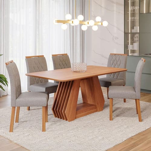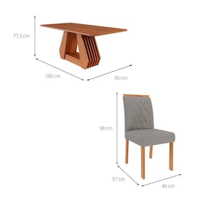 Que tal o Conjunto de Jantar Ágata e Juliana?Nenhum lar fica completo sem um cantinho onde você possa fazer as refeições do dia a dia e receber os familiares naquelas ocasiões especiais, por isso é tão importante contar com um conjunto de mesa e cadeiras para a sua sala de jantar. O modelo Ágata é ideal para trazer um charme clássico ao espaço ao mesmo tempo em que serve muito bem à rotina, já que o tampo apoia as louças e comidinhas, enquanto os assentos estofados do kit Juliana acomodam até 6 pessoas de maneira aconchegante - tudo para deixar a hora da confraternização mais gostosa e seus convidados sempre à vontade aí na sua casa. Ah, reparou na combinação de cores das peças? Ela são harmônicas e vão casar bem com o restante do mobiliário do seu cômodo. Daí é só chamar todo mundo para desfrutar de momentos incríveis com você ;) Marca: Modern