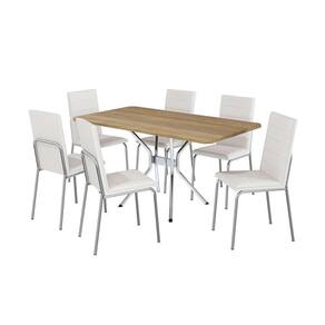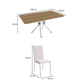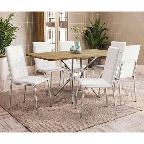 conjunto de mesa retangular com tampo marrom e 6 cadeiras mariel revestimento sintético branco e cromado