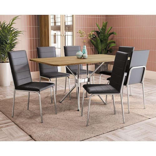 que tal o conjunto de jantar mariel?nenhum lar fica completo sem um cantinho onde você possa fazer as refeições do dia a dia e receber os familiares naquelas ocasiões especiais, por isso é tão importante contar com um conjunto de mesa e cadeiras para a sua sala de jantar. o modelo mariel é ideal para t um charme clássico ao espaço ao mesmo tempo em que o serve muito bem à rotina, já que o tampo retangular apoia as louças e comidinhas e os assentos estofados acomodam até 6 pessoas de maneira aconchegante - tudo para deixar a hora da confraternização mais gostosa e seus convidados sempre à vontade aí na sua casa. ah, reparou na combinação de cores das peças? ela são harmônicas e vão casar bem com o restante do mobiliário do seu cômodo. daí é só chamar todo mundo para desfrutar dessas vantagens com você ;) Marca: Modern Ean: 7909875601172
