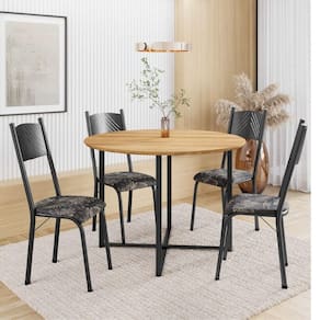 O Conjunto de Mesa Liz com 4 cadeiras possui design moderno que se adapta a qualquer ambiente. Contém tampo redondo madeirado 1m em BP resistente a riscos, manchas e umidade, e as cadeiras são revestidas em tecido sintético de fácil limpeza. Ainda conta com base da mesa e cadeiras em aço, garantindo resistência e durabilidade.