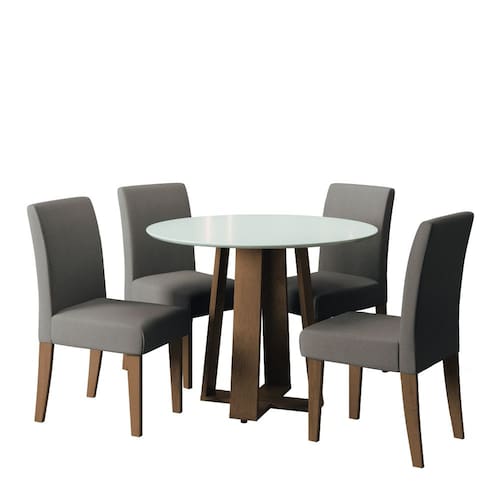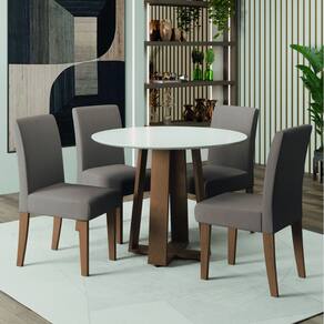 O conjunto de Mesa Athenas Redonda 1,03m 4 Cadeiras Trieste é perfeito para compor sua cozinha, sala de jantar ou área gourmet. A mesa possui acabamento em verniz Vitreo, que forma uma camada transparente de alta resistência que garante mais qualidade ao produto. O design dos pés da mesa em X facilita acomodar melhor as cadeiras no seu espaço. As cadeiras são revestidas em tecido Veloplus toque macio e confortável na cor Mascavo. Excelente para receber os amigos e familiares, tornando o momento ainda mais especial!