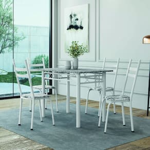MODELO: Conjunto De Mesa Sala de Jantar Leia Com 4 Cadeiras Tubular Granito 1,20m