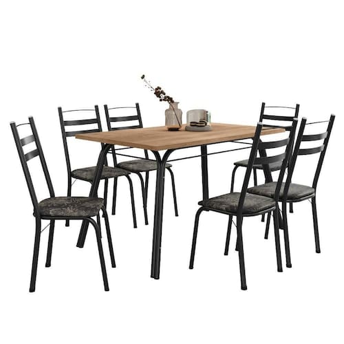 Conjunto De Mesa Sala De Jantar Com 6 Cadeiras Tubular Tampo Bp Madeirado Retangular 1,36m Preto/flor