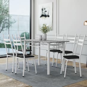 Conjunto De Mesa Sala De Jantar Leia Com 6 Cadeiras Tubular Granito 1,40m Artefamol Branco / Preto