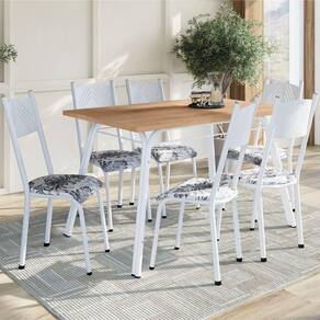 Conjunto De Mesa Sala De Jantar Lotus Com 6 Cadeiras Tampo Madeirado 1,36m Branco Floral Artefamol Branc/flor O Conjunto de Mesa Lótus com 6 cadeiras possui design moderno que se adapta a qualquer ambiente. Contém tampo retangular em BP resistente a riscos, manchas e umidade, e as cadeiras são revestidas em tecido sintético de fácil limpeza. Ainda conta com base da mesa e cadeiras em aço, garantindo resistência e durabilidade. MEDIDAS: Medidas da Mesa (Base + Tampo): [ A ] = 76 cm [ L ] = 80 cm [ P ] = 136 cm Medidas da Cadeira: [ A ] = 92 cm [ L ] = 34 cm [ P ] = 41 cm PESO MESA: 20,13 kg (Base + Tampo) PESO CADEIRA: 2,36 kg CADEIRAS SUPORTAM: 120 kg MESA SUPORTA: 40 kg MODELO: Conjunto de Mesa Lotus com 6 Cadeiras Liz Branco Floral Artefamol MARCA: Artefamol COR: Branco Floral TIPO DE PINTURA: Epóxi ACABAMENTO: Liso MATERIAL: Base e Cadeira de Aço ESPESSURA DO TAMPO: 5 cm QUANTIDADE DE CADEIRAS: 6 DENSIDADE DA ESPUMA DA CADEIRA: D10 TAMPO MESA: MDP TECIDO CADEIRA: Sintético PÉS: Sapatas de Plástico ITENS INCLUSOS: 1 Base, 1 Tampo e 6 Cadeiras GARANTIA: 3 Meses