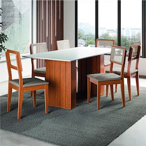 O conjunto de mesa 1,80m com 6 cadeiras Santiago é a escolha perfeita para cozinhas e salas de jantar que buscam conforto e estilo. A mesa conta com tampo em MDF de alta qualidade e base dupla ripada, que proporciona um visual elegante e atual, transformando o ambiente com um toque de modernidade e sofisticação. As cadeiras oferecem assento acolchoado e encosto em tela, proporcionando conforto e estilo. Feito com materiais resistentes e fáceis de limpar, este conjunto é perfeito para quem busca estilo, conforto e praticidade em um único produto.