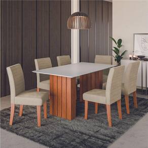 MODELO: Conjunto de Mesa Sala de Jantar Ripada Santiago 1,60m 6 Cadeiras Creta