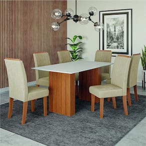MODELO: Conjunto de Mesa Sala de Jantar Ripada Santiago 1,60m 6 Cadeiras Grécia