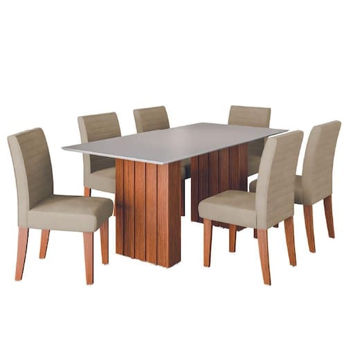 MODELO: Conjunto de Mesa Sala de Jantar Ripada Santiago 1,80m 6 Cadeiras Creta