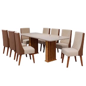 O conjunto de mesa Mond 2m com 8 cadeiras Tifany é a escolha perfeita para cozinhas e salas de jantar que buscam conforto e estilo. A mesa possui tampo de vidro temperado colado, com cantos suavemente arredondados, e conta com base ripada, que traz um visual moderno e sofisticado ao ambiente. As cadeiras Tifany são projetadas para combinar charme e resistência, transformando seu espaço em um local aconchegante e elegante. O encosto com bordados e revestido com tecido linho adiciona um toque de personalidade e sofisticação ao design. A parte traseira em tecido sintético traz um contraste moderno e fácil de limpar. Enquanto isso, o assento com espuma oferece conforto ideal para o uso diário. Os pés em madeira maciça garantem estabilidade e durabilidade, tornando o conjunto uma escolha duradoura e prática para seu lar.