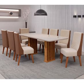 MODELO: Conjunto de Mesa Sala de Jantar Tampo com Vidro Mond 2m 8 Cadeiras Tifany
