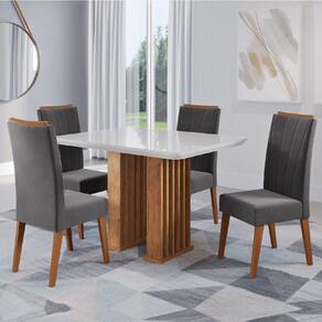 Conjunto De Mesa Sala De Jantar Ripado Tampo Com Vidro Mond 1,20m 4 Cadeiras Sofia Veludo Madeirado / Cinza