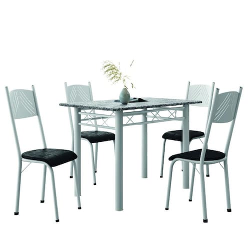 O Conjunto de Mesa Sara com 4 Cadeiras foi desenvolvido para trazer ainda mais beleza, conforto e praticidade ao seu lar. A mesa possui tampo retangular em granito natural, material nobre e resistente a altas temperaturas, perfeito para apoiar panelas e travessas sem preocupação. Seu design combina elegância e funcionalidade, tornando o ambiente mais sofisticado. As cadeiras são estofadas com tecido sintético de fácil limpeza, unindo conforto no sentar com a praticidade do dia a dia. O acabamento proporciona toque macio e visual moderno, adaptando-se facilmente a diferentes estilos de decoração. A estrutura da mesa e das cadeiras é feita em aço de alta qualidade, garantindo estabilidade, resistência e longa durabilidade.