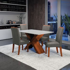 O Conjunto de Mesa com 4 cadeiras Grécia é perfeito para compor sua cozinha ou Sala de Jantar. A mesa possui base com design moderno, e tampo em MDF com vidro temperado, que forma uma camada transparente de alta resistência que garante mais qualidade além de deixa seu ambiente mais sofisticado. As cadeiras são uma peça de destaque que trazem estilo e conforto para o seu espaço. Com assento acolchoado e encosto bordado com espaldar, elas são revestidas com tecido Veluplus de alta qualidade, que oferece toque macio e durabilidade excepcional. Feitas com materiais resistentes e fáceis de limpar garantindo maior durabilidade e resistência.
