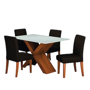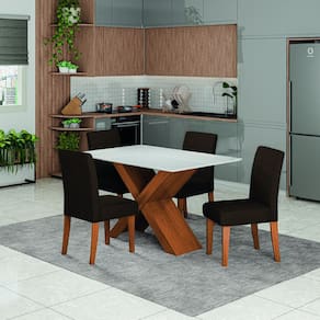 Conjunto de Mesa Sala de Jantar Tampo com Vidro 1,36m Grécia 4 Cadeiras Trieste Dobuê - Marrom