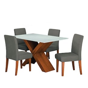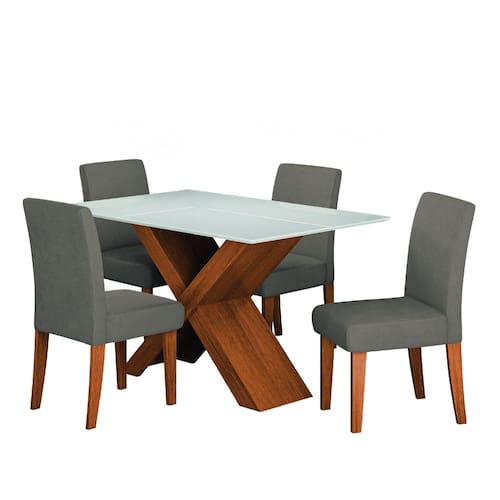 O Conjunto de Mesa Grécia com 4 cadeiras Trieste é perfeito para compor sua cozinha ou Sala de Jantar. A mesa possui base com design moderno, e tampo em MDF com vidro temperado, que forma uma camada transparente de alta resistência que garante mais qualidade além de deixar seu ambiente mais sofisticado. Já as cadeiras, com estrutura em MDF e revestimento em tecido Veluplus, oferecem um toque suave e aconchegante. Os assentos e encostos são acolchoados com espuma de alta qualidade, proporcionando máximo conforto.