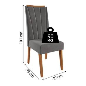 DIFERENCIAL: Tampo da mesa com vidro e bordas arredondadas, base sofisticada com desenho autêntico. Cadeira com base em madeira maciça encosto acolchoado, e espalda, revestimento em tecido veludo
