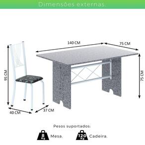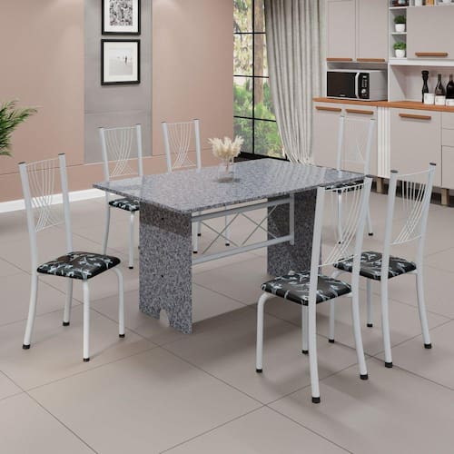 Quer deixar sua casa completa? Uma dica bacana de como transformar o seu lar, deixando-o mais receptivo e bonito? Então você precisa de móveis indispensáveis e deixar seu lar muito mais aconchegante, receptivo e sempre disponível para receber a visita de amigos, familiares e convidados. Você vai se apaixonar por este incrível Conjunto de Mesa com 6 Cadeiras Lorena. Ideal para cozinha, ele é a melhor opção para completar o espaço. Aproveite!! Medida da Mesa (A x L x P): 75 cm x 75 cm x 140 cm Peso da Mesa: 80,7 kg Mesa suporta até: 10.0000 Acabamento da Cadeira/Banco: Pintura Texturizada Acabamento da Mesa: Pintura Texturizada Ambiente Principal: Cozinha Cadeira/Banco estofada: Somente Assento Estofado Cadeira/Banco Estofada: Somente Assento Estofado Cadeira/Banco suporta até: 120.0000 codigo_ean: 7909903494042 Complexidade da Montagem: Baixa: pode ser montado por uma pessoa sozinha Cor: Preto Floral/Branco Cor do Produto: Preto Floral/Branco Escala de Brilho: Semi-Brilho Espessura do Tampo: 20 mm Itens Inclusos: 1 Mesa, 6 Cadeiras, Manual de Montagem e Kit Ferragens. Linha ou Coleção: Lorena Manual de Montagem e Instalação: https://product-hub-prd.madeiramadeira.com.br/880725/documents/203183d8-2818-46b7-92aa-b6fbddfbd8a7nualdemontagemcadeiraemesa.pdf Material da Base da Mesa: Granito Material da Estrutura da Cadeira: Aço Material do Tampo: Granito Medida da Base (A x L x P): 74 cm x 45 cm x 86 cm Medida da Cadeira/Banco (A x L x P): 98 cm x 40 cm x 37 cm Medida do Tampo (L x C x E): 75 cm x 140 cm x 2,0 cm Necessita Montagem: Sim Origem do Produto: Nacional Peso da Cadeira/Banco: 3,48 kg Possui Apoio Para os Pés: Não Quantidade de Cadeiras: 6 Quantidade de Lugares: 06 Recomendações de Uso, Manutenção e Limpeza: Usar um pano de tecido macio e seco, evitar detergentes, alvejantes e produtos químicos de limpeza; no tampo usar tecido macio levemente umedecido. Sistema de Montagem: Parafusos