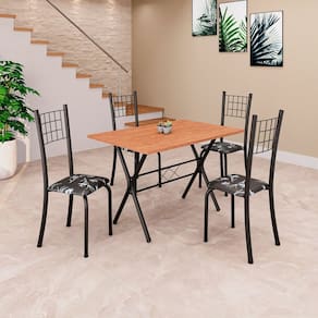 Conjunto de Mesa Tampo em MDF com 4 Cadeiras Dany Preto/Cinamomo - Cinza