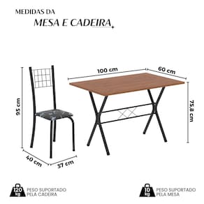 Medida da Mesa (A x L x P): 75,8 cm x 100 cm x 60 cm