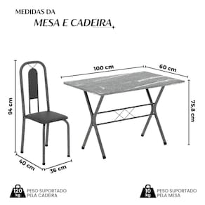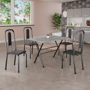 Quer deixar sua casa completa e prática? Uma dica bacana de como transformar o seu lar, deixando-o mais receptivo e bonito? Então você precisa de móveis indispensáveis para deixar seu lar muito mais aconchegante, receptivo e sempre disponível para receber a visita de amigos, familiares e convidados. Você vai se apaixonar por este incrível e moderno Conjunto de Mesa com 4 Cadeiras. Ideal para cozinha, ele é a melhor opção para completar o espaço que você desejar. Aproveite!! Medida da Mesa (A x L x P): 75,8 cm x 100 cm x 60 cm Peso da Mesa: 39,82 kg Mesa suporta até: 10.0000 Acabamento da Cadeira/Banco: Pintura Texturizada Acabamento da Mesa: Pintura Texturizada Ambiente Principal: Cozinha Cadeira/Banco Estofada: Somente Assento Estofado Cadeira/Banco estofada: Somente Assento Estofado Cadeira/Banco suporta até: 120.0000 codigo_ean: 7900288125057 Complexidade da Montagem: Baixa: pode ser montado por uma pessoa sozinha Cor: Preto liso / Martelado Prata Cor do Produto: Preto liso / Martelado Prata Cor Secundária: Cinza De Canto (Canto Alemão): Não Escala de Brilho: Semi-Brilho Espessura do Tampo: 1,5 mm Estrutura do Assento: MDP Formato do Tampo: Retangular Itens Inclusos: 1 Mesa, 4 Cadeiras,Kit Ferragens e Manual de Montagem Linha ou Coleção: Lívia Manual de Montagem e Instalação: https://product-hub-prd.madeiramadeira.com.br/314545749/documents/5b8cc928-cb3a-447c-8042-3c0e5e3160ce72716723352817406057034671.pdf Marca: Soma Móveis Material da Base da Mesa: Aço Material da Estrutura da Cadeira: Aço Material do Tampo: Granito Medida da Cadeira/Banco (A x L x P): 94 cm x 36 cm x 40 cm Medida do Tampo (L x C x E): 100cm x 60cm x 1,5 cm Mesa Extensível: Não Necessita Montagem: Sim Origem do Produto: Nacional Peso da Cadeira/Banco: 2,28 kg Possui Apoio Para os Pés: Não Quantidade de Cadeiras: 4 Quantidade de Lugares: 04 Recomendações de Uso, Manutenção e Limpeza: Não permitir que molhe os pés da base, usar um pano de tecido macio e seco, evitar detergentes, alvejantes e produtos químicos de limpeza; no tampo usar tecido macio levemente umedecido. Sistema de Montagem: Parafusos